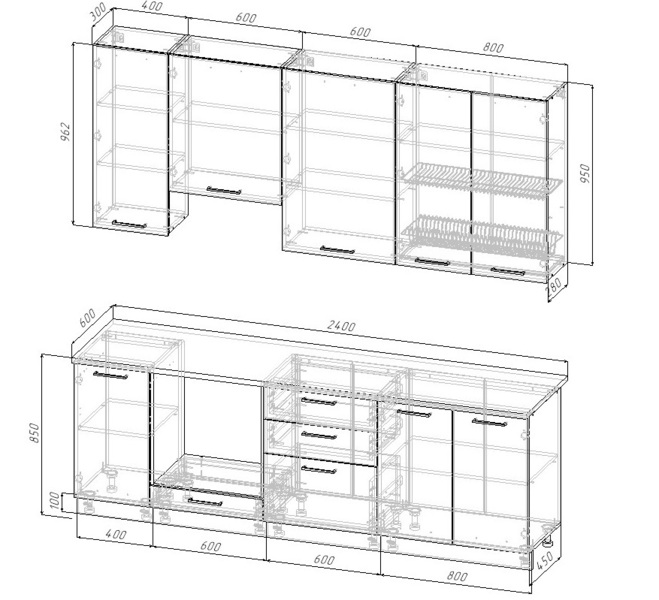 Кухонный гарнитур Фьюжн 2400 мм Sanvut