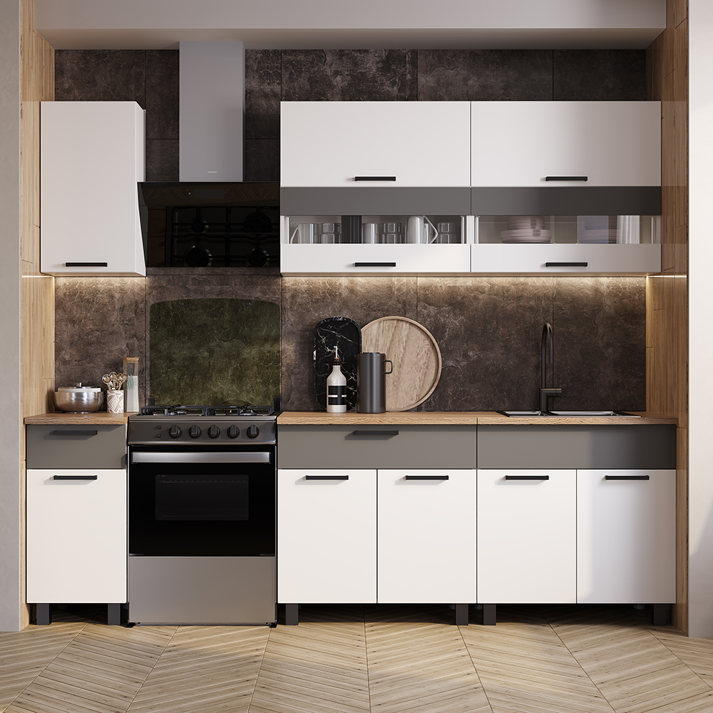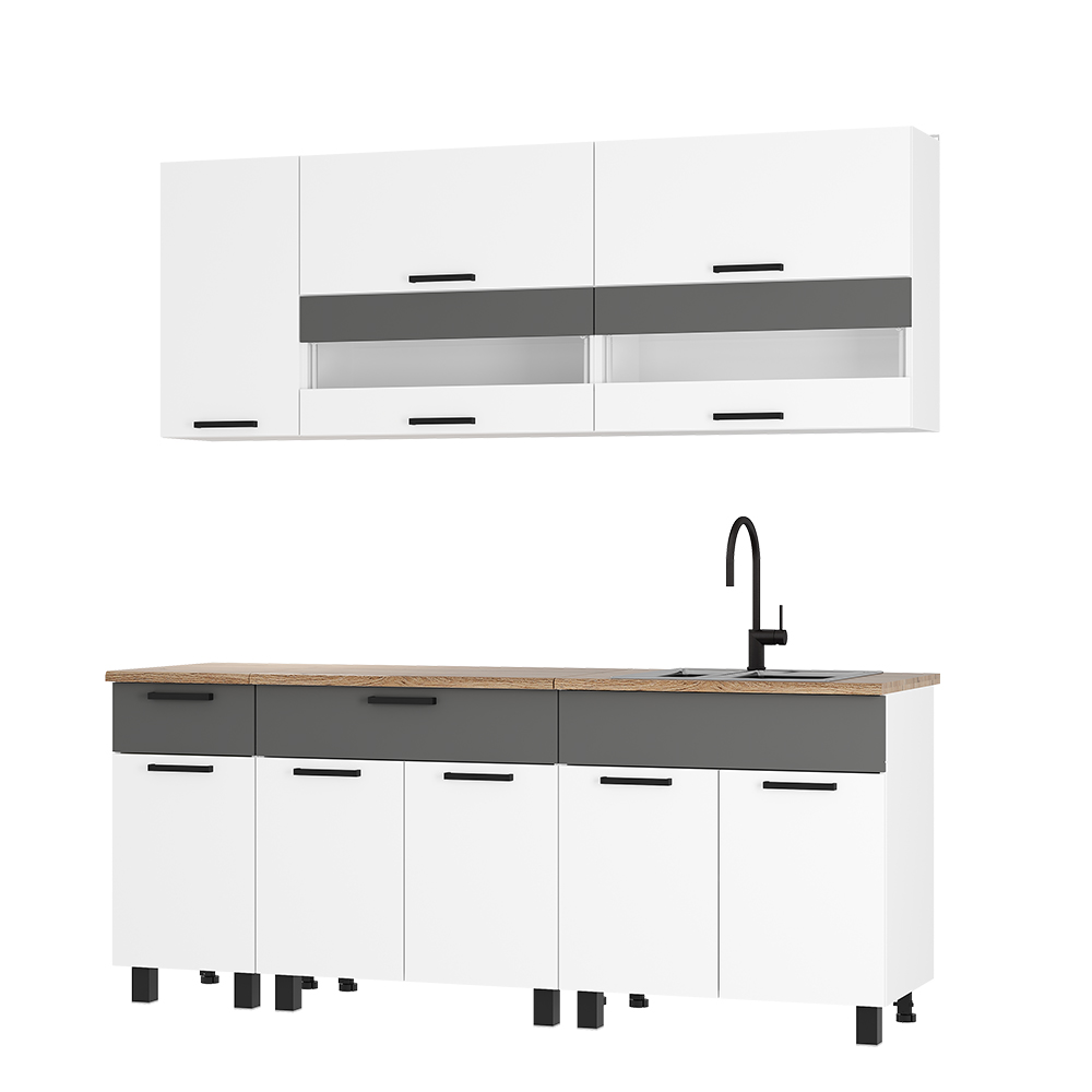 Кухонный гарнитур Монтана 2000 мм белый/графит (БТС) в Ивделе - ivdel.mebel-e96.ru