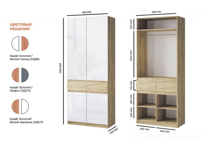 Артикул: A64918Шкаф 1000 мм Турин ЛДСП крафт/белый шагрень (ВВР)