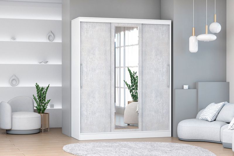 Шкаф-купе 1700 мм 3-х дверный с 1-м зеркалом (арт. 012) белый/цемент (Диал)