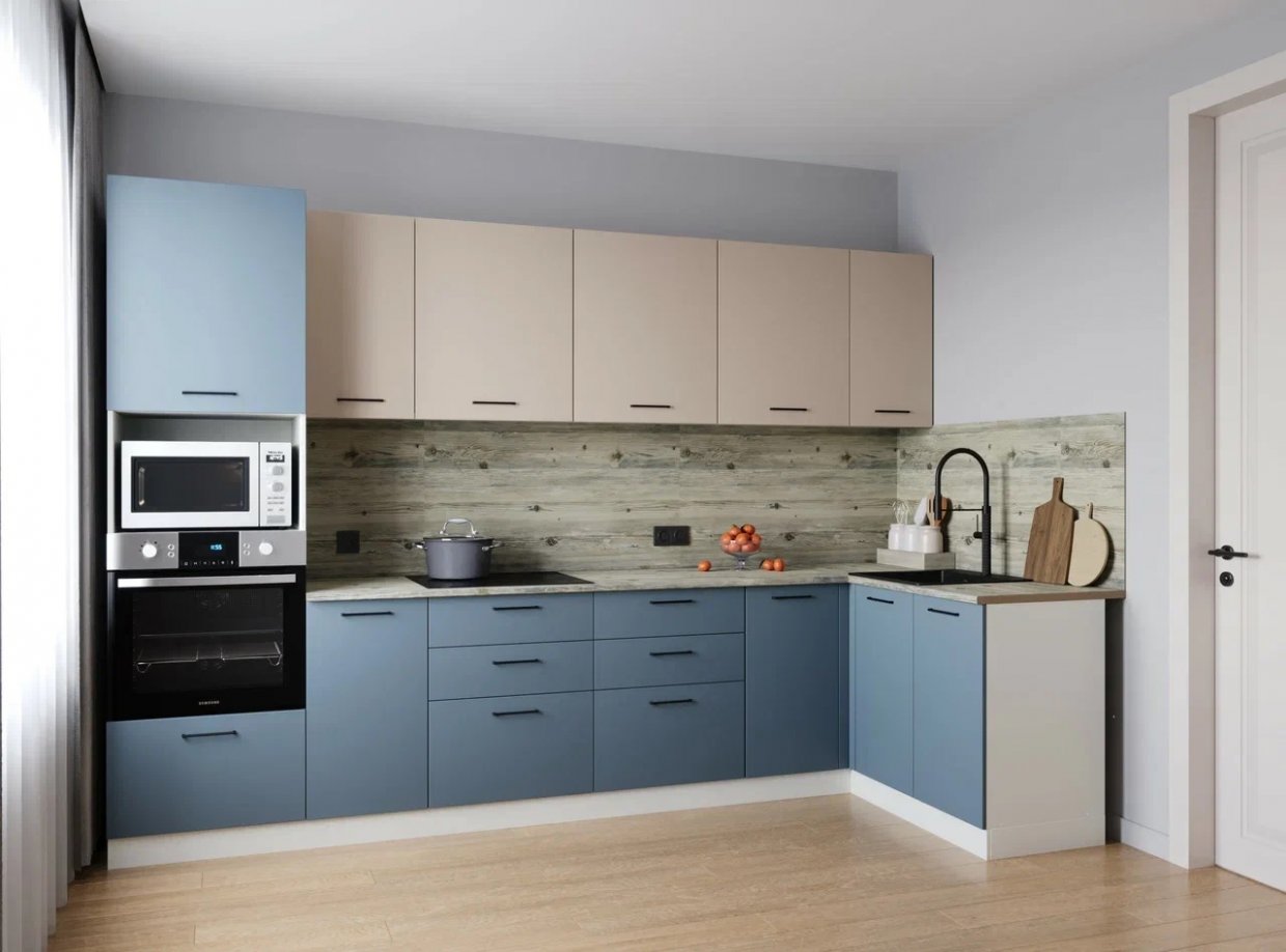 • Фасады со свесом – дают возможность использовать верхние модули без установки ручек, а также установить скрытую подсветку